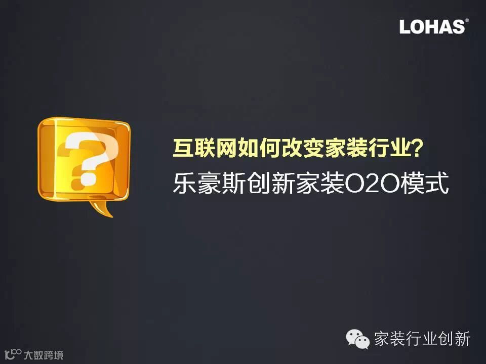 【导读】家装O2O领域是目前还没有被BAT“入侵”的一片蓝海,通过乐豪斯招商PPT详解家装O2O互联网模式以及装企发展方向。