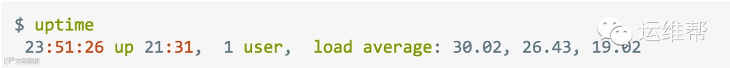 最右的三个数值分别是1分钟、5分钟、15分钟系统负载的移动平均值。它们共同展现了负载随时间变动的情况。举个例子,假设你被要求去检查一个出了问题的服务器,而它最近1分钟的负载远远低于15分钟的负载,那么你很可能已经扑了个空。