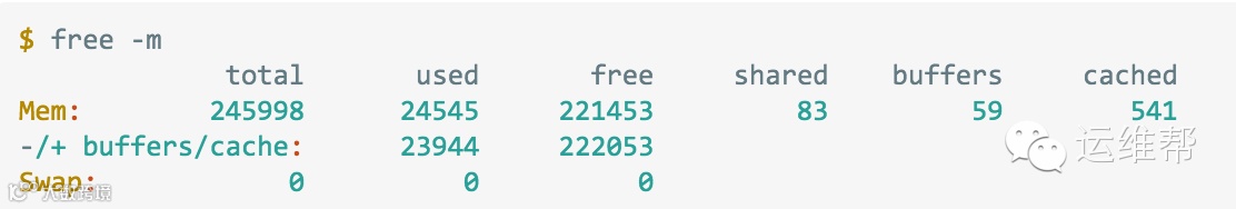 free:空闲的内存千字节数。如果你数不清有多少位,就说明系统内存是充足的。接下来要讲到的第7个命令,free -m,能够更清楚地说明空闲内存的状态。