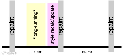 如果按照 60 fps 计算,那么每一帧执行时间为 1/60s,也就是 16.7ms。