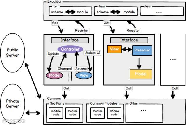 E(Excalibur)M(Modules)C(Common)架构以高内聚、低耦合为主要的特点,以面向接口编程为出发点,降低了模块与模块之间的联系。