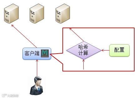 在运行时,Memcached服务实例只需要消耗非常少的CPU资源,却需要使用大量的内存。因此在决定如何组织您的服务端缓存结构之前,您首先需要搞清当前服务中各个服务实例的负载情况。如果一个服务器的CPU使用率非常高,却存在着非常多的空余内存,那么我们就完全可以在其上运行一个Memcached实例。而如果当前服务中的所有服务实例都没有过多的空余内存,那么我们就需要使用一系列独立的服务实例来搭建服务端缓存。一个大型服务常常拥有上百个Memcached实例。而在这上百个Memcached实例中所存储的数据则不尽相同。由于这种数据的异构性,我们需要在访问由Memcached所记录的信息之前决定在该服务端缓存系统中到底由哪个Memcached实例记录了我们所想要访问的数据: