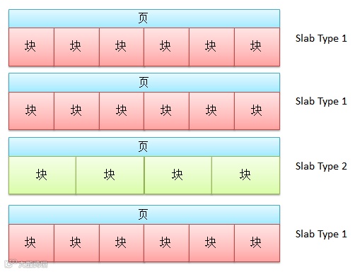 为了解决这个问题,Memcached使用了一种叫Slab的结构。在该分配算法中,内存将按照1MB的大小划分为页,而该页内存则会继续被分割为一系列具有相同大小的内存块: