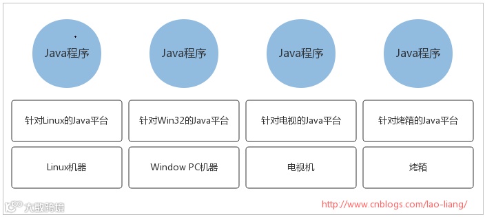 Java的跨平台特性,因为它有针对不同平台的虚拟机。