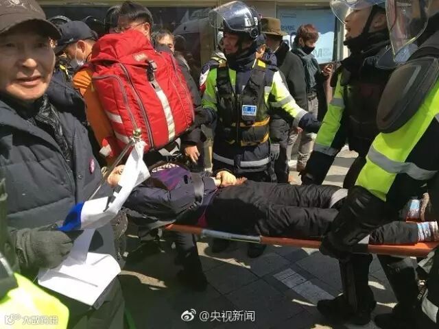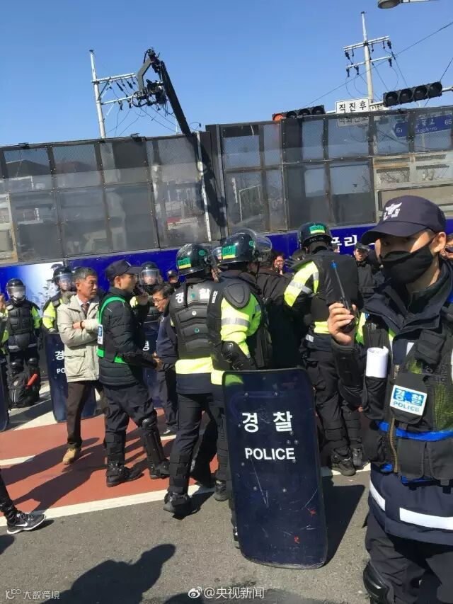 在韩国宪法法院宣布弹劾成立后,大量朴槿惠的支持者在宪法法院门外集会表达对判决的不满。一些示威者试图冲破警方设置在法院门外的防线,与警方发生冲突。
