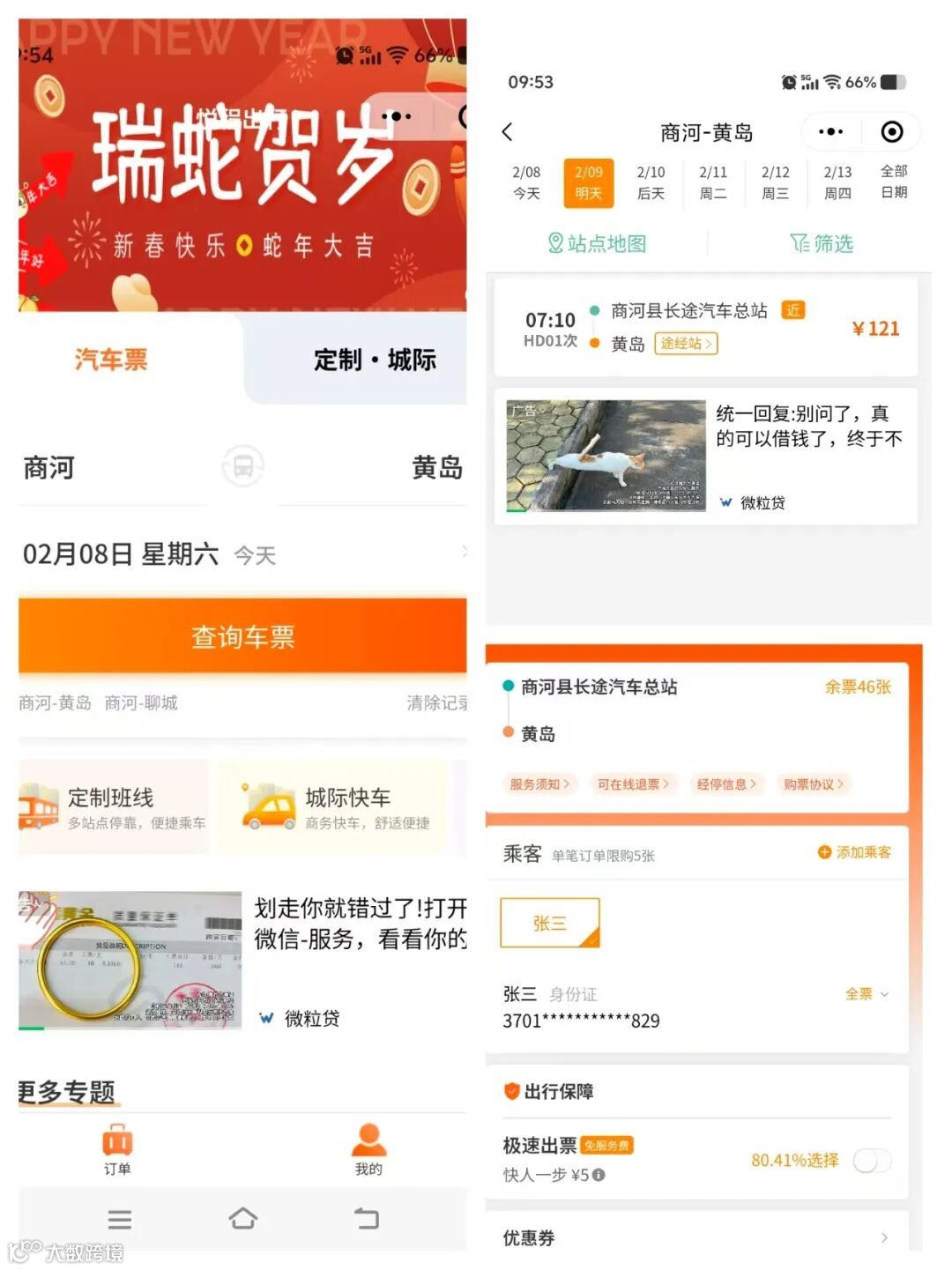 输入出发地点、目的地→点击查询车票→根据自己的出行时间选择相应车票即可,根据提示输入乘车人姓名、身份证号、点击支付下单即可。