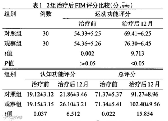结果:随访12月后,观察组的FIM评分高于对照组(P<0.05),观察组的肌张力Ashworth分级较对照组差异有统计学意义(P0.05),观察组的BI评分高于对照组(P<0.05)。