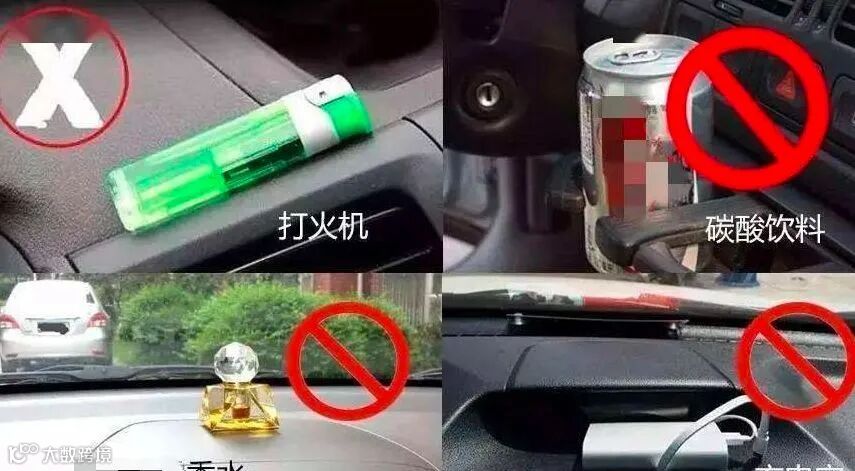 13、谨慎防止车内物品,不要将易燃易爆物品放入车内,如气体打火机、碳酸型饮料、空气清新剂、香水、电子产品等物品,更不要将汽油、柴油等危险品放在车内。防止温度过高产生爆炸,对驾乘人员造成不必要的伤害。