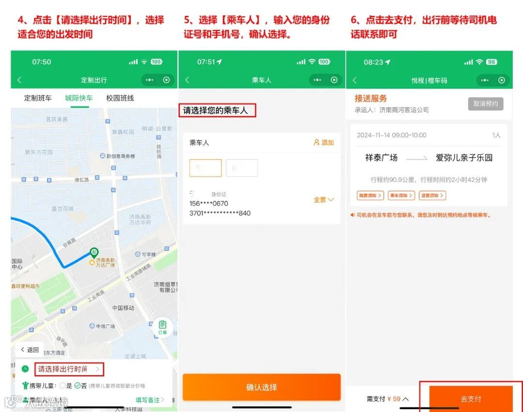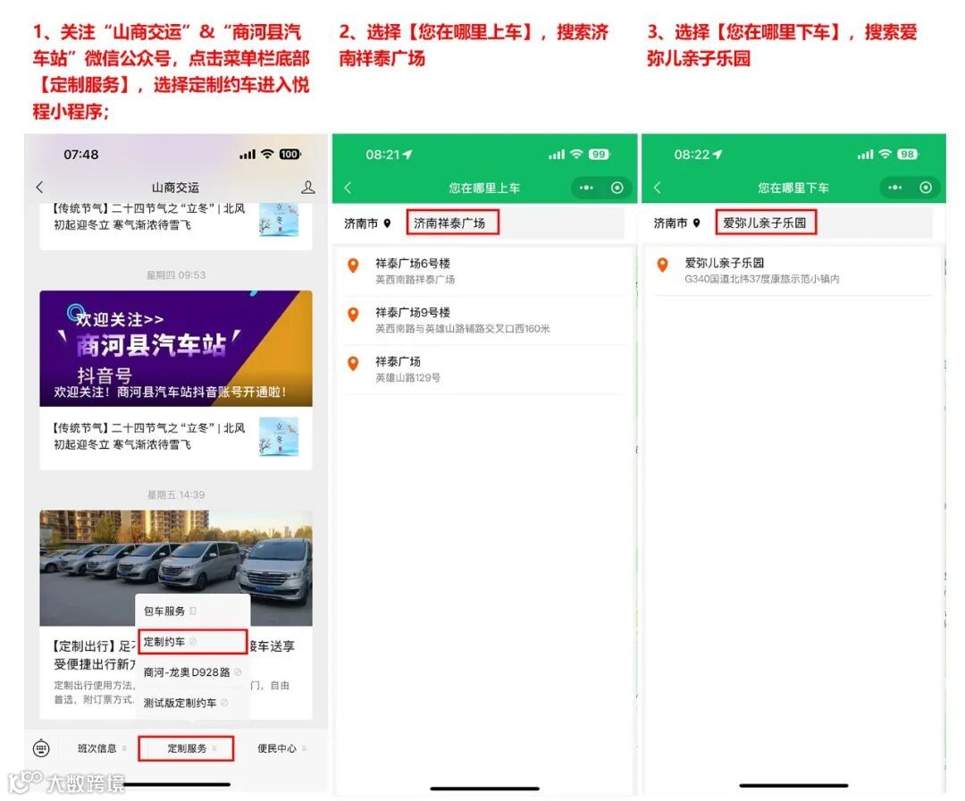 如果你是在济南西片区,那就以济南祥泰广场为例,乘车流程为您奉上: