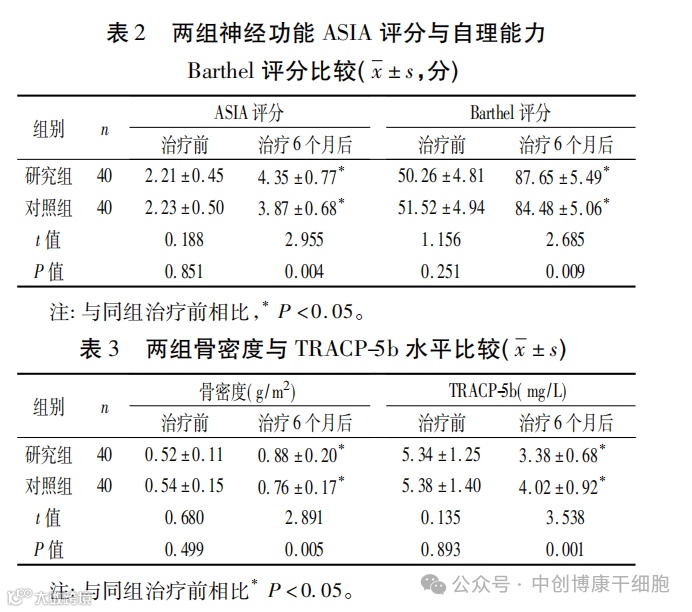 在一项临床试验中,研究者对40例创伤性胸腰椎骨折患者在实施后路内固定融合术治疗基础上,联合间充质干细胞移植治疗,结果表明:后路内固定融合术联合间充质干细胞移植治疗创伤性胸腰椎骨折的疗效显著,有利于修复脊柱结构和神经功能,改善骨密度及骨代谢水平,提高自理能力,值得推广应用。