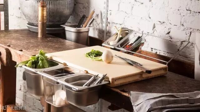 顶部还有倾斜的支架,可防止一切调料和准备处理的食材。
