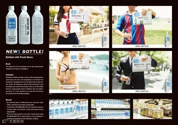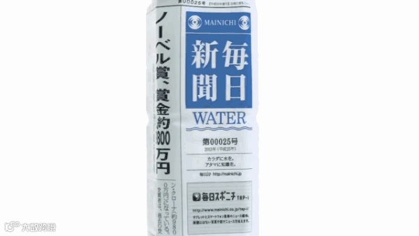 为了重振报纸销量,一家报社决定将报纸印刷在饮料瓶包装上,推出了这款 News Bottle 报纸水瓶。