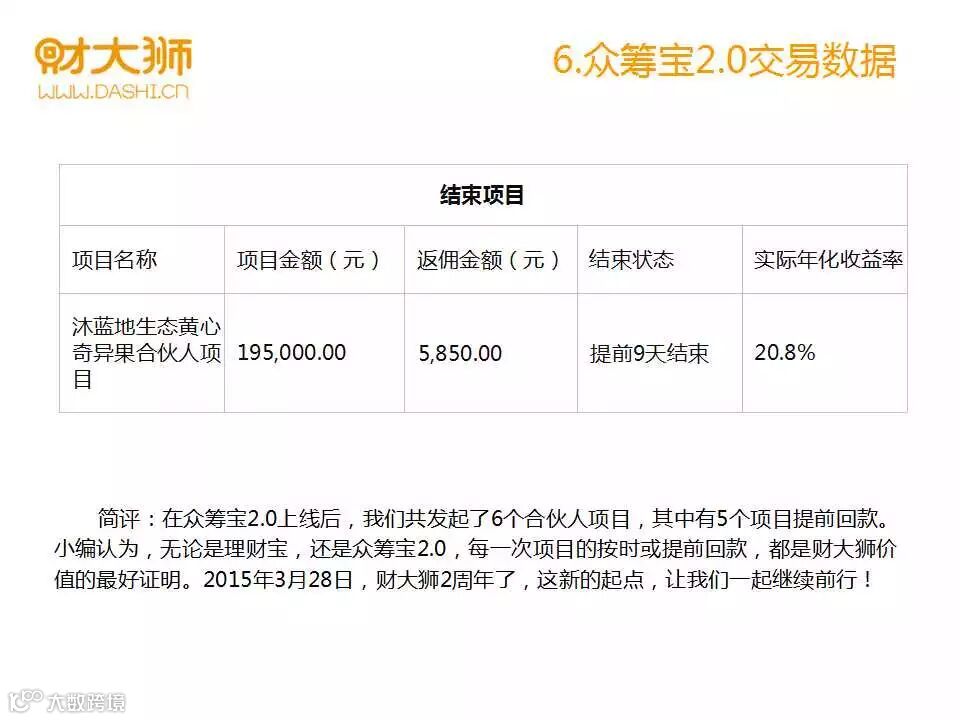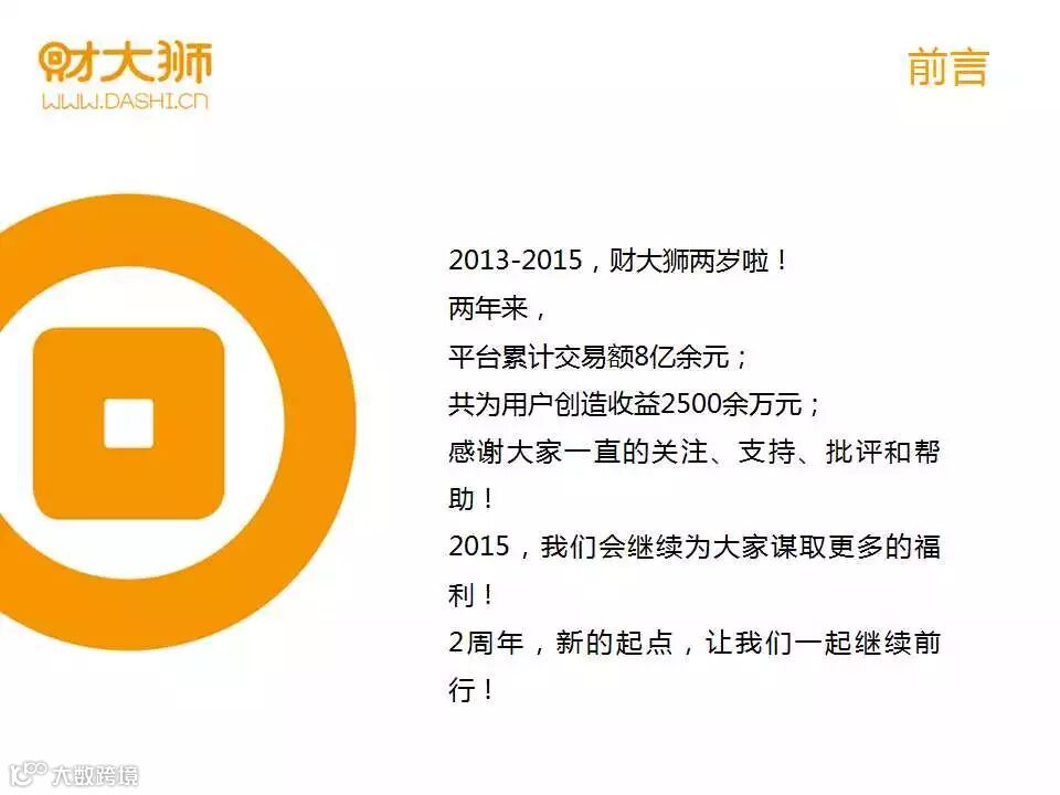 云信汇通是全国第一家采用第三方资金托管的P2P平台,也是中国领先的农业互联网金融公司。财大狮(www.dashi.cn)乃其旗下互联网理财品牌,最高年化利率可达21.5%,并提供T+1和T+0两种普通及快速提现方式,让高收益和流动性兼得!