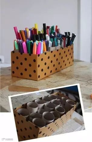 21用完的卷纸芯不要扔掉,塞在鞋盒里面做笔筒吧