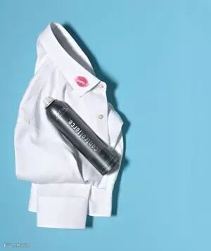 10在口红印上喷一些造型喷雾,静置10分以后用湿布或海绵擦拭,之后照一般程序机洗即可去除