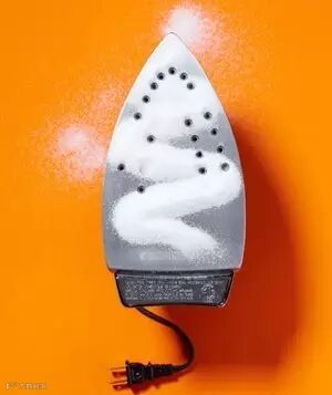4垫上洒盐的纸后熨烫,可以去除熨斗上的污垢