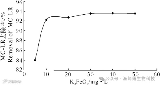 在《水生态学杂志》2009年9月第二卷第5期,《高铁酸钾对微囊藻毒素的去除效果探讨》一文中有明确研究,该篇论文通过大量详实细致的实验,研究了高铁酸钾对微囊藻毒素 (MC-LR)的去除效果‚探讨不同反应影响因素(反应时间、高铁酸钾质量浓度、温度和PH)对去除率的影响。结果表明‚高铁酸钾能够有效地去除水中的微囊藻毒素。高铁酸钾对微囊藻毒素的去除率与高铁酸钾投加质量浓度、反应时间成正相关‚其中高铁酸钾质量浓度对去除效果的影响较为明显;反应温度对去除率的影响不显著;PH对去除率也有重要影响‚当PH分别为 2和 10时去除率分别为 94.51%和 87.96%。一般养殖水体PH值9左右去除率为91%左右。