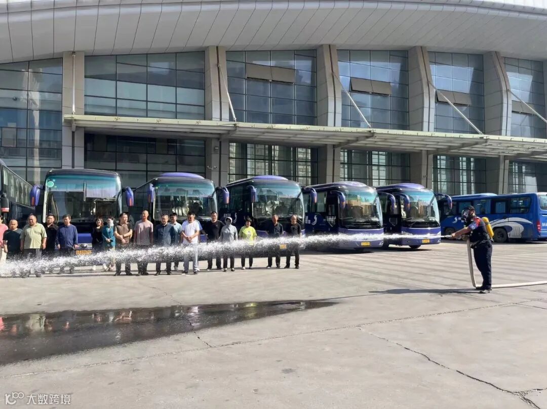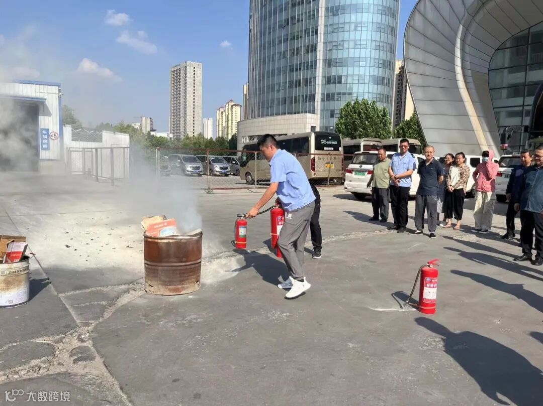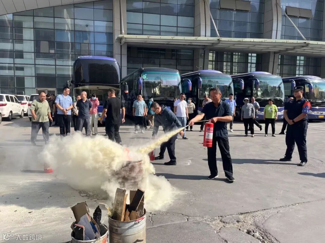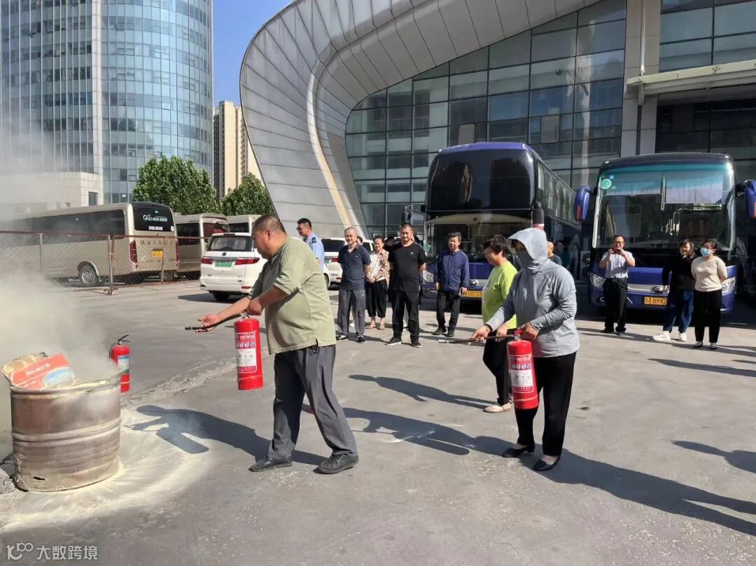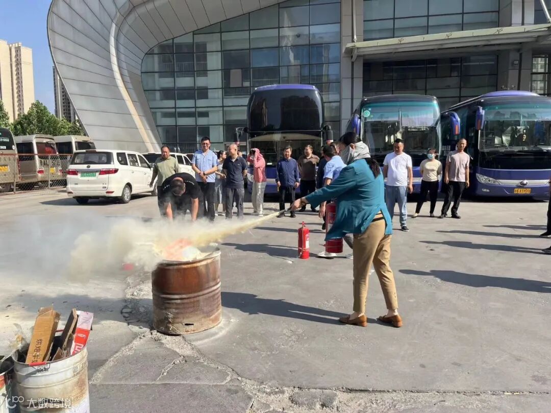 然后在汽车站后广场开展消防应急演练,工作人员按照动作要领要求,轮番操作,使用消防器材依次灭火,真正体验了现场灭火的过程。