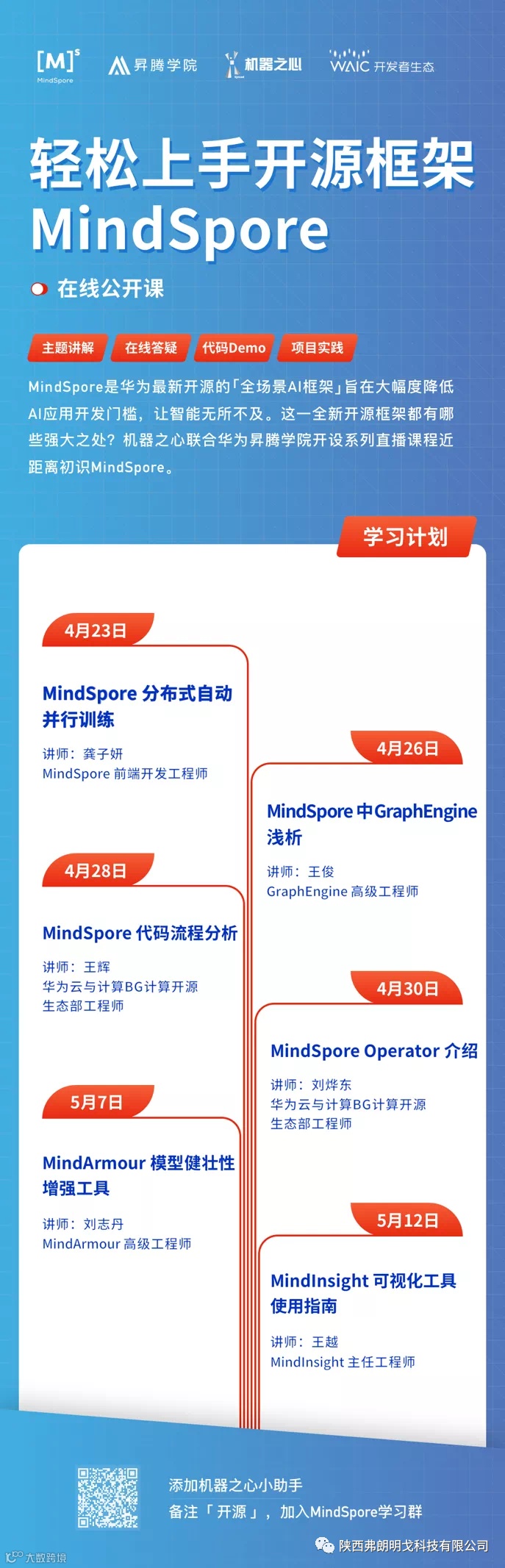 为了让开发者们细致学习 MindSpore,机器之心与华为昇腾学院发布了《轻松上手开源框架MindSpore》线上公开课: