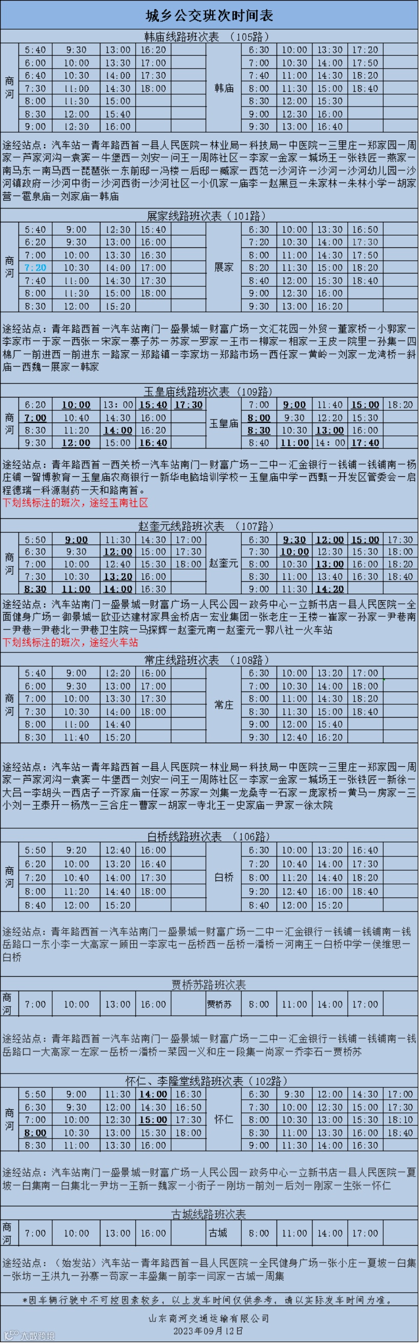 最新城乡公交班次时间表,记得收藏~请持续关注微信公众号【山商交运】&【商河县汽车站】,以最新通知为准。如有疑问,欢迎拨打400-686-0035咨询。