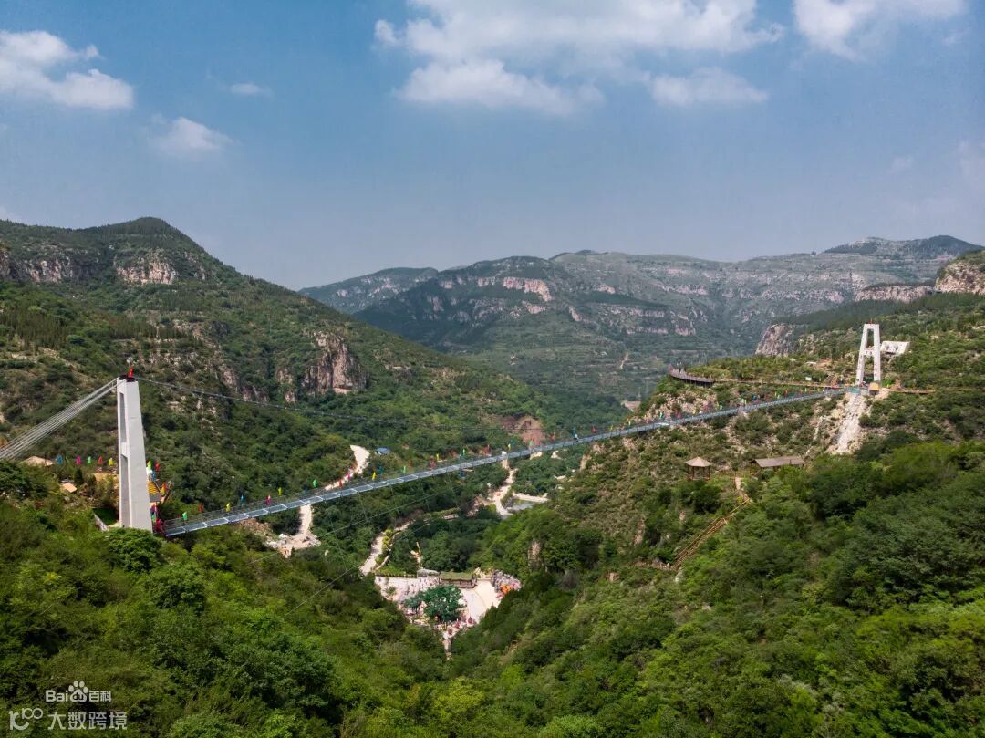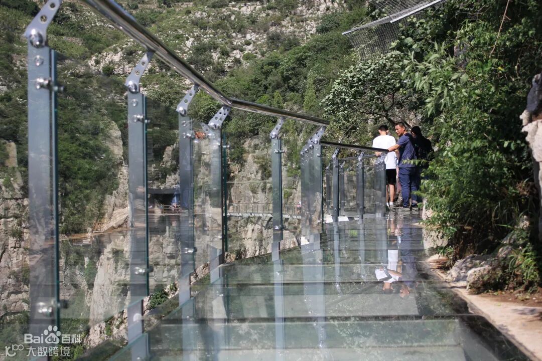 济南青铜山大峡谷玻璃栈道是山东首个挂壁玻璃栈道,距地面约130米,长208米 ,玻璃栈道采用超白精磨钢化夹胶玻璃,青铜山大峡谷玻璃栈道也是济南周边最长的玻璃栈道。