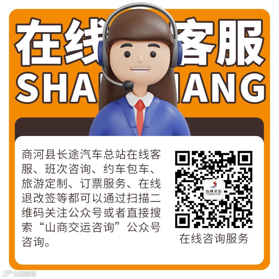 微信公众号【山商交运咨询】,包括商河县长途汽车总站在线客服、班次咨询、约车包车、旅游定制、订票服务、在线退改签等服务功能。