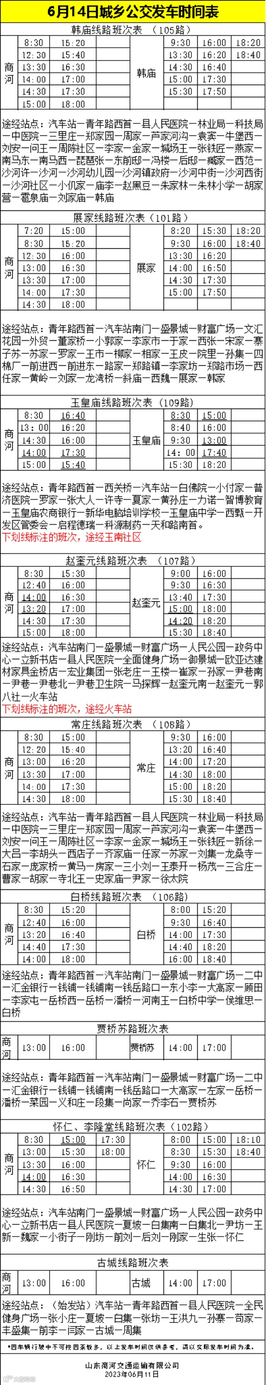 6月14号城区公交发车时间表