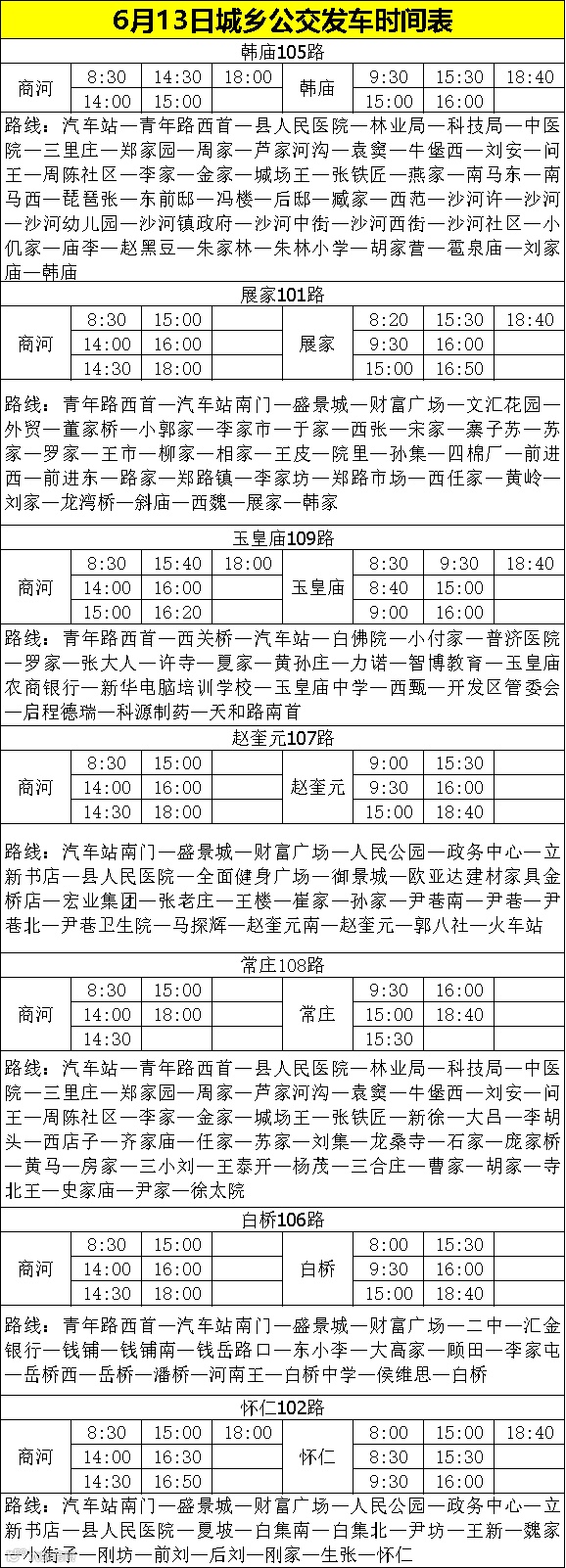6月13号城区公交发车时间表