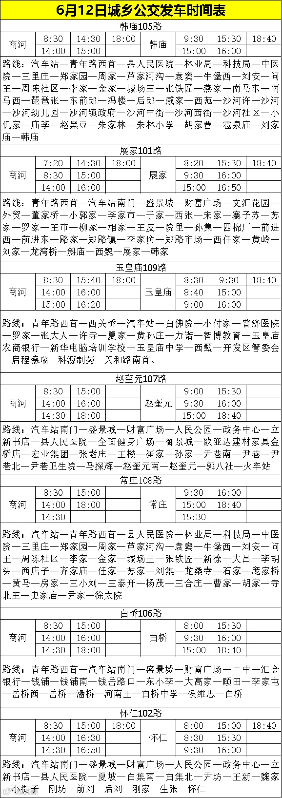 6月12号城区公交发车时间表