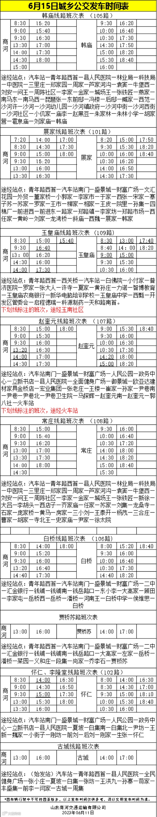 6月15号城区公交发车时间表
