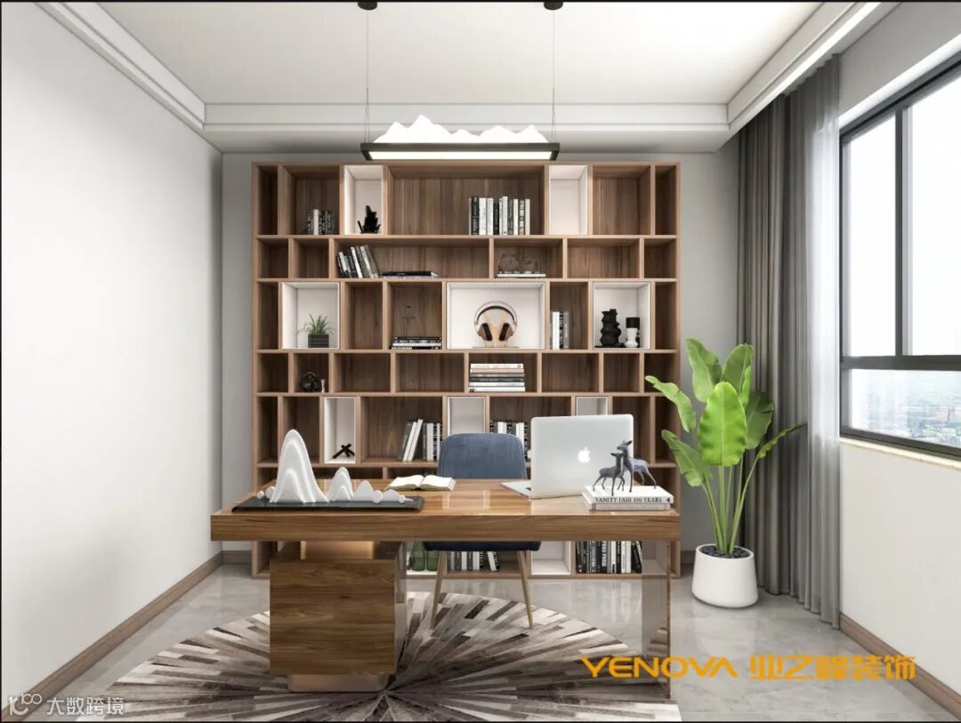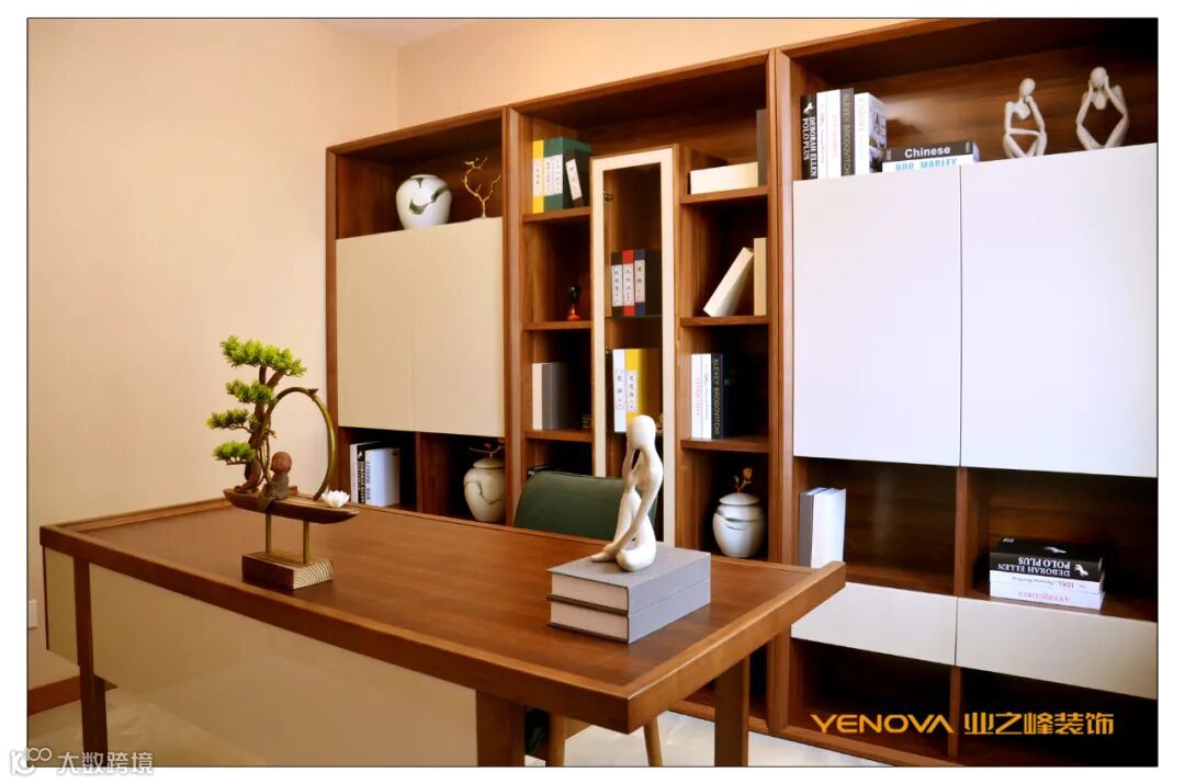 书房的设计很简单,色调与整体风格统一,一张主桌配靠墙的书柜,让卸下繁重负担的主人进入知识的海洋,畅快淋漓的享受知识的沐浴,忘却一切的烦恼,在精神世界里畅游!