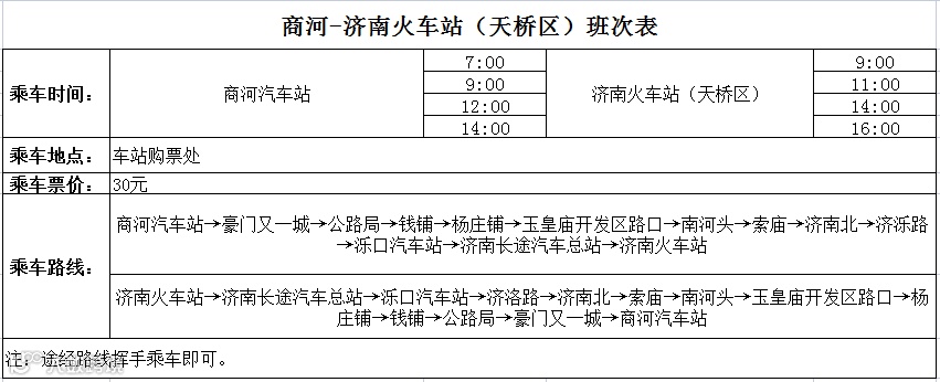 济南→商河:6:00-19:00(末班)根据客流量流水发车