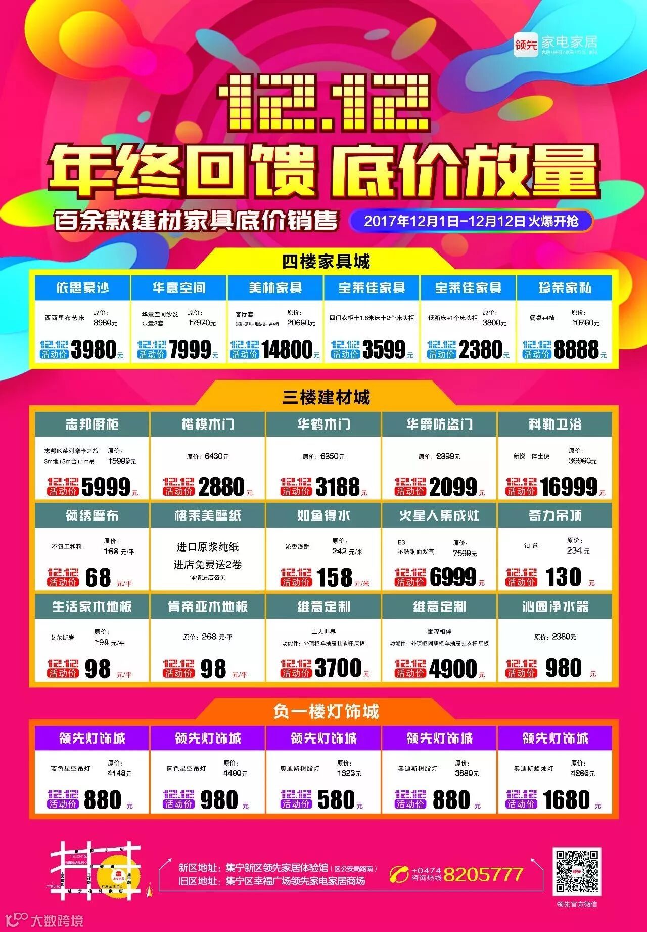新区地址:集宁新区领先家居体验馆(红星美凯龙北侧)