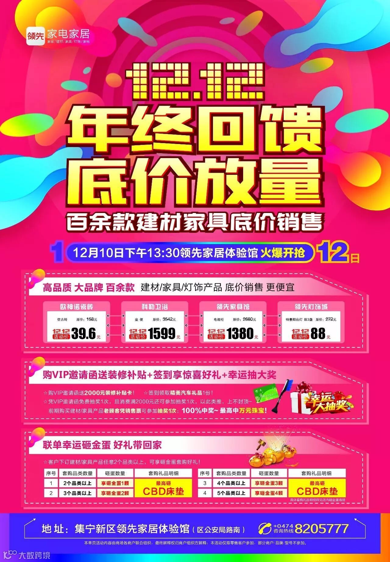 客户下订建材/家具产品任意2个品类以上,可享砸金蛋套购好礼!