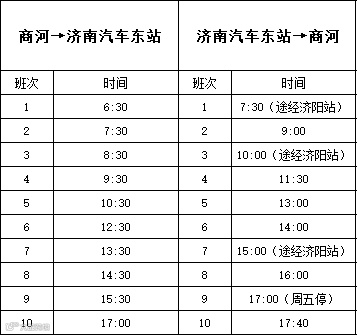 济南汽车东站→商河: