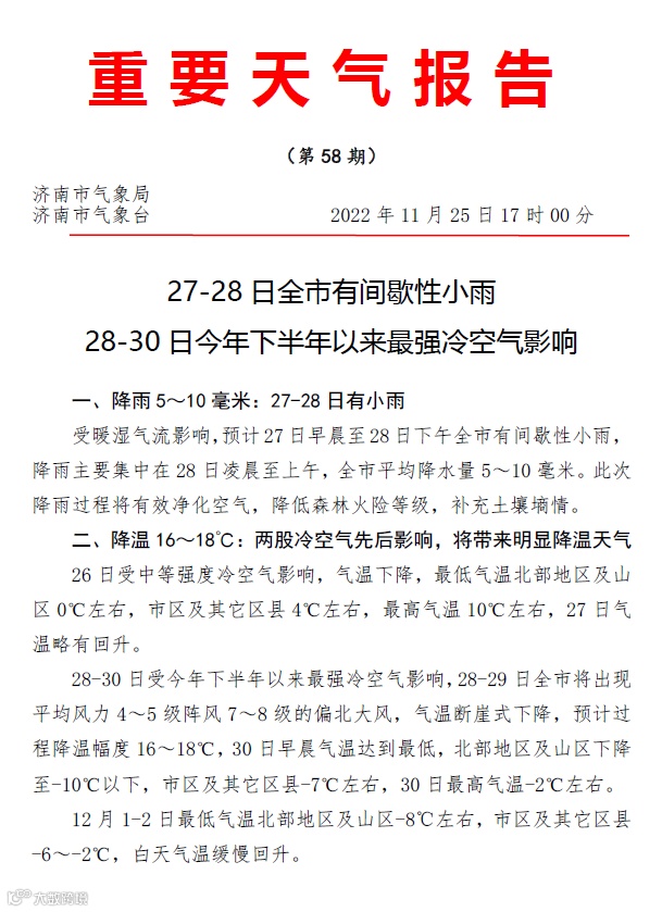 济南市气象局11月25日17时00分