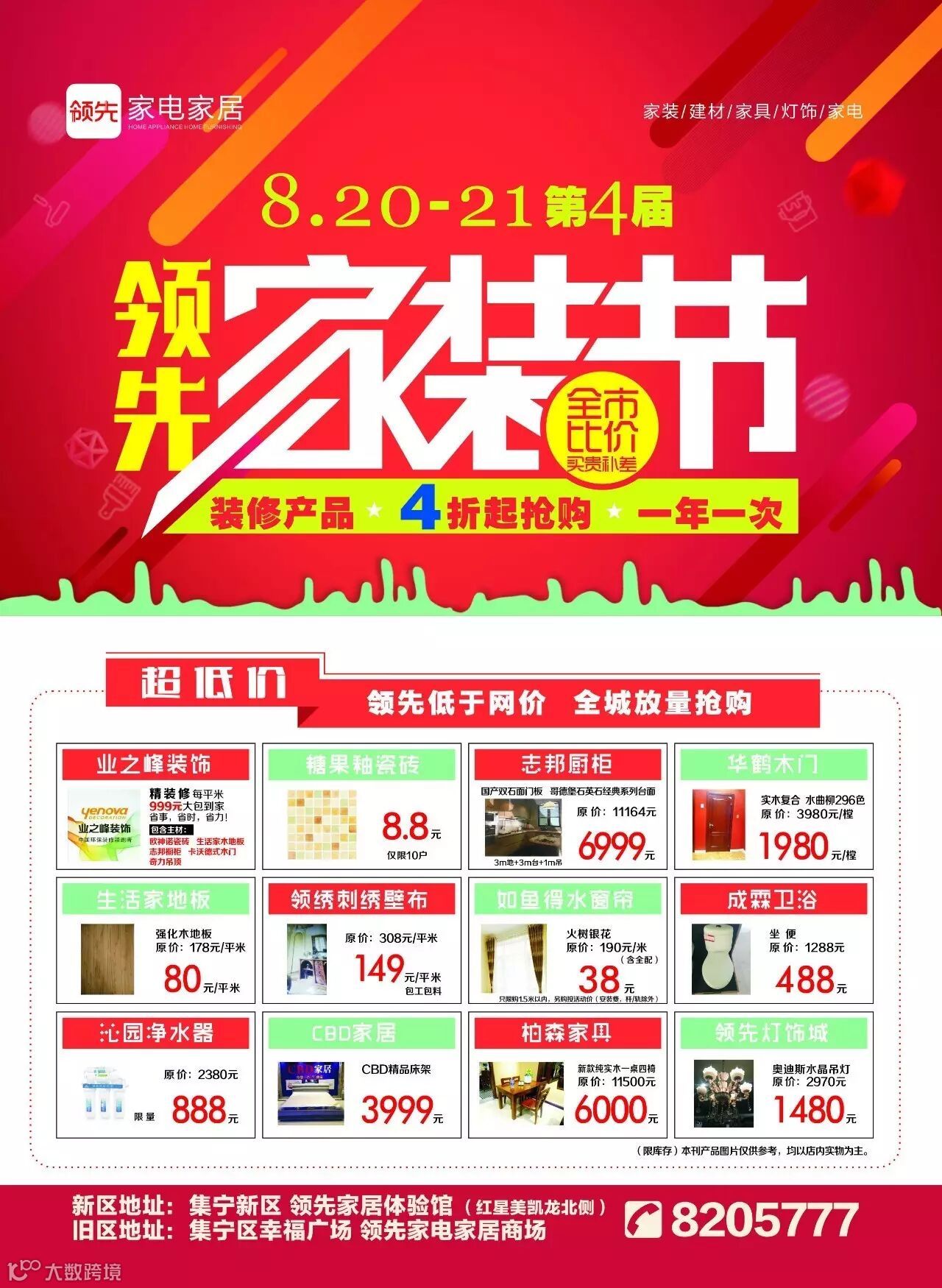 新区地址:集宁新区领先家居体验馆(红星美凯龙北侧)