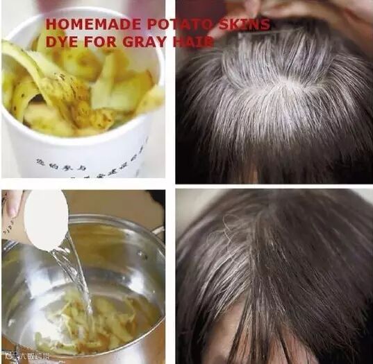 把煮过的土豆水倒出来,扔掉皮,用牙刷蘸点土豆水染发(头发最好先洗干净),白发很快就会有改变哦~