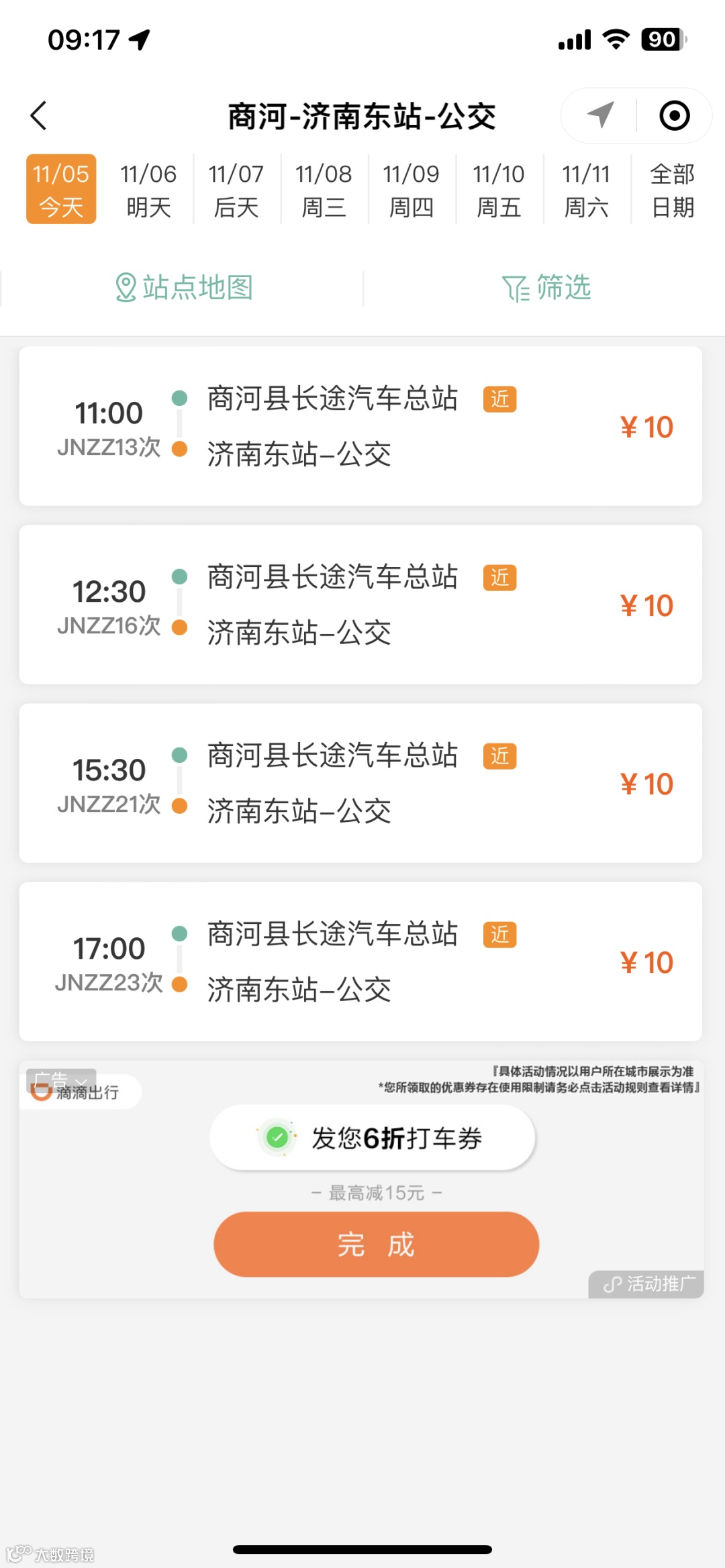 商河发车时间:6:30、8:00、11:00、12:30、15:30、17:00