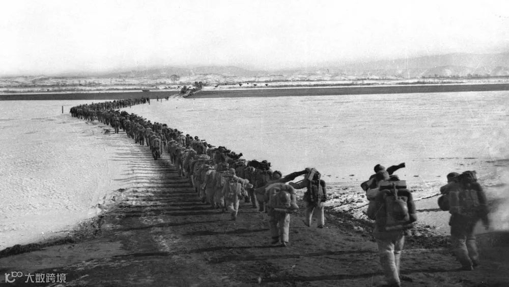 志愿军第9兵团战士通过长津湖大桥。(抗美援朝纪念馆供图)