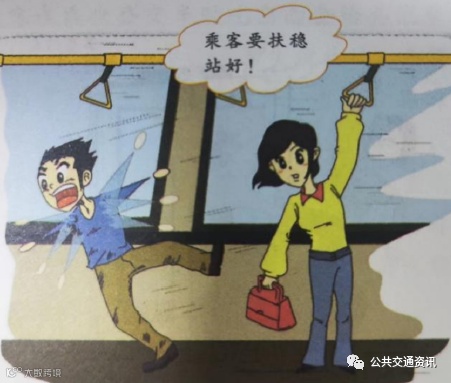 1、上车后,就近选择座位坐稳。没有座位时,选择有扶手的位置侧向站立( 不要站在车门边) ;双脚自然分开,双手握紧扶手或把手,以免紧急制动、急转向时摔倒。