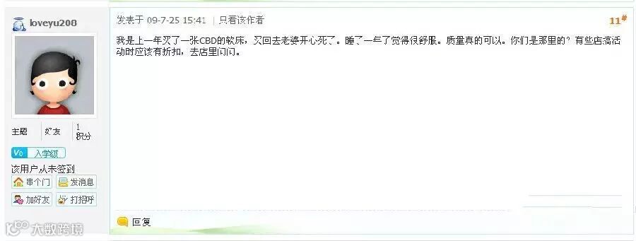 CBD家居,从来不做广告,为什么能做到软床第一品牌?因为CBD寝具做的是消费者的口碑,是实打实的给消费者做事,只要是购买CBD寝具的客户,基本上用过后都会带着自己的亲戚朋友,再次挑选CBD的产品.