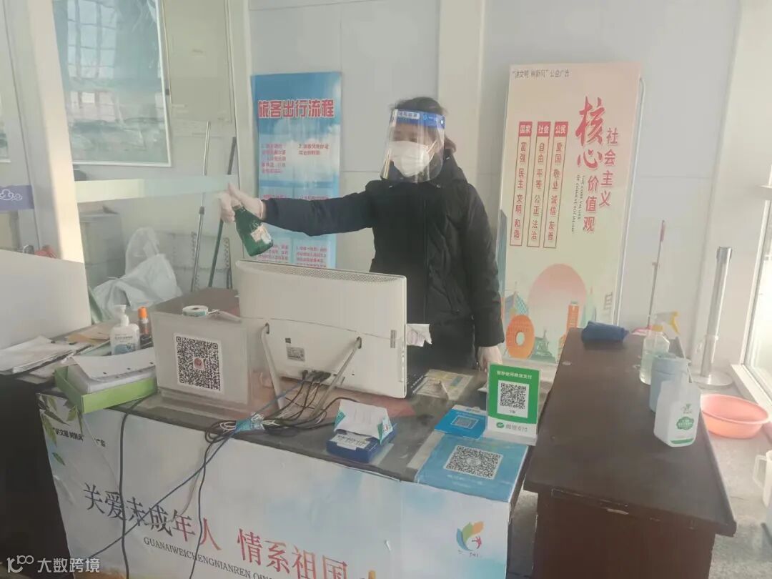 乘客买完票以后每一次都要进行消毒,与购票乘客全程无接触。