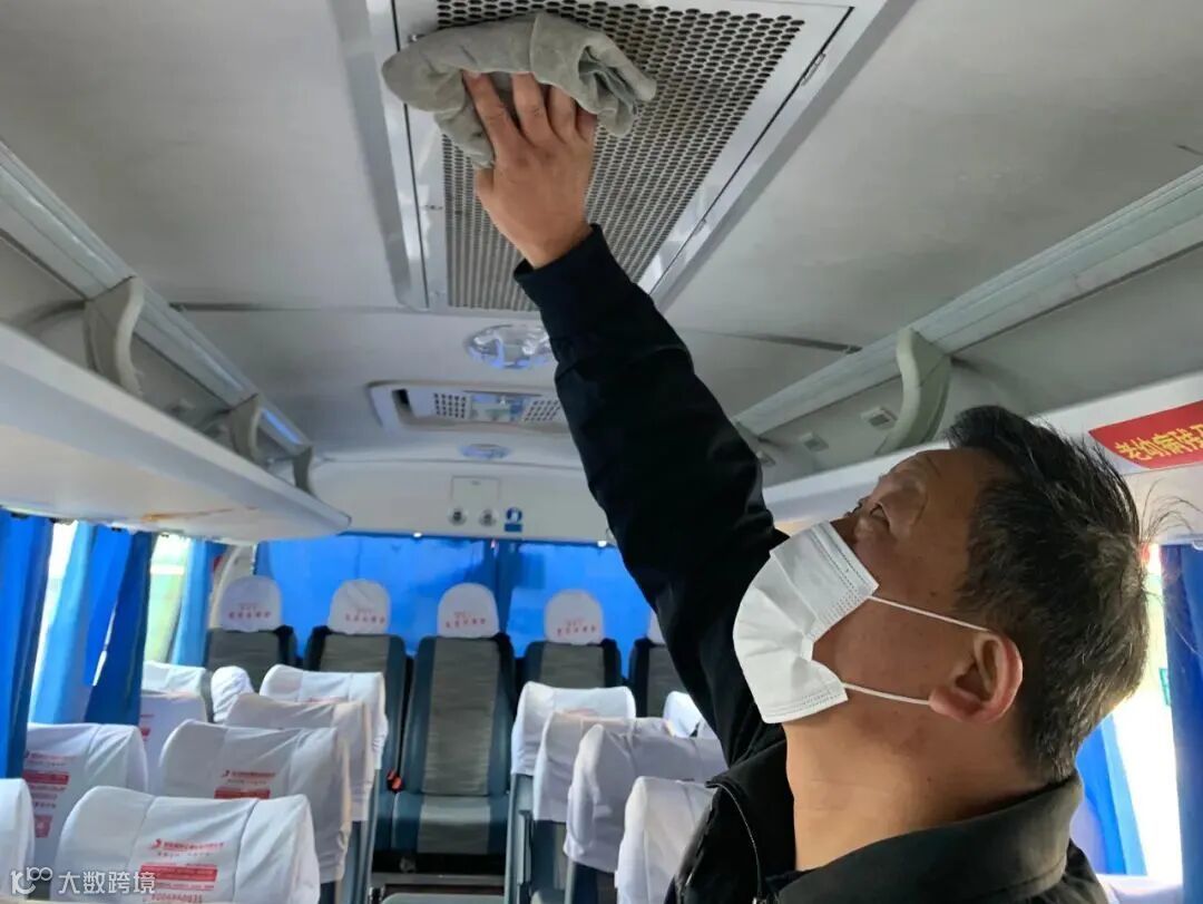 在场站内,工作人员正在对停放的车辆依次进行暖风系统检修。主要对运营车辆的暖风系统进行全面检查,保障车辆工作性能良好,确保气温骤降时,给乘客提供温暖舒适的乘车环境。