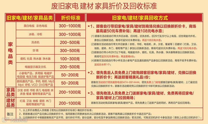 下面,小编来帮您介绍换购家电、家具、建材产品折价标准和本次活动的具体内容:
