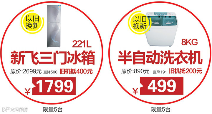 如果您的家里有闲置或者废弃的:家电(电视/冰箱/冷柜/洗衣机/烟机/灶具/净水器/电脑/手机 等),家具(沙发/衣柜/书柜/茶几/电视柜/床/床垫/餐桌/餐椅等),建材产品(灯具/卫浴/地板/瓷砖/木门/橱柜 等),卖掉了也不值几个钱,完全可以来参加我们这次的“以旧换新”活动;