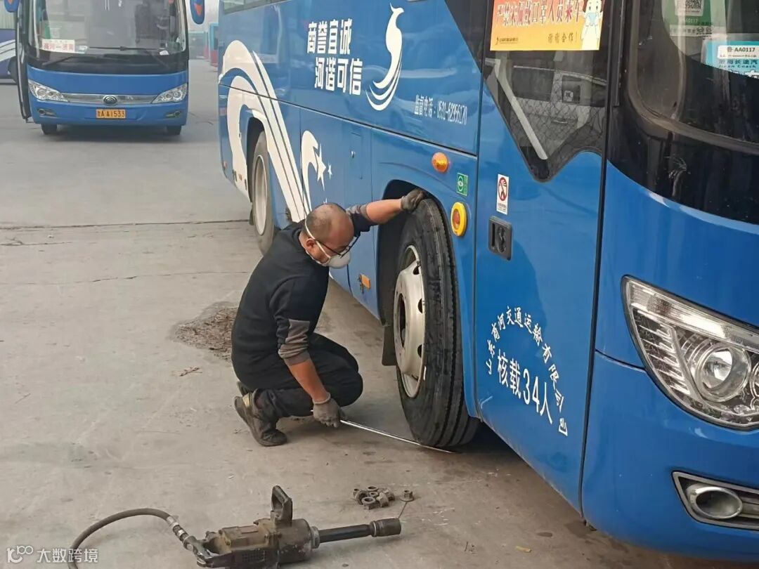 我司对营运车辆进行车辆轮胎专项检查,确保市民出行安全