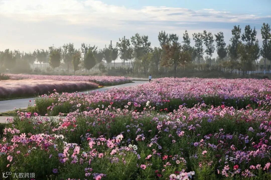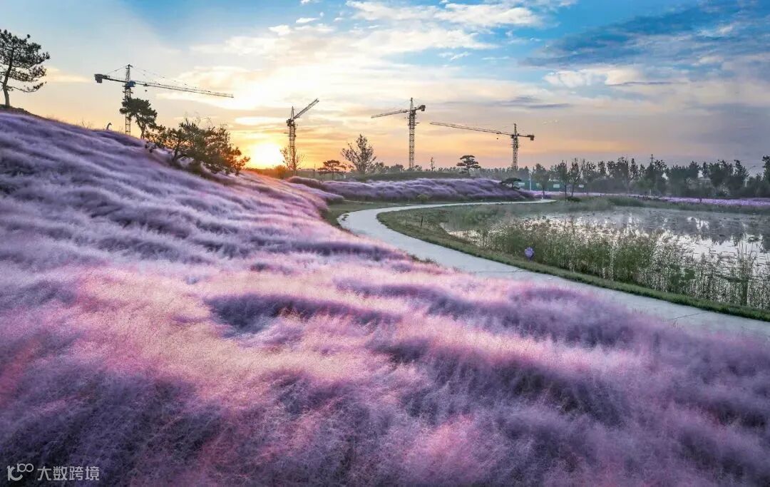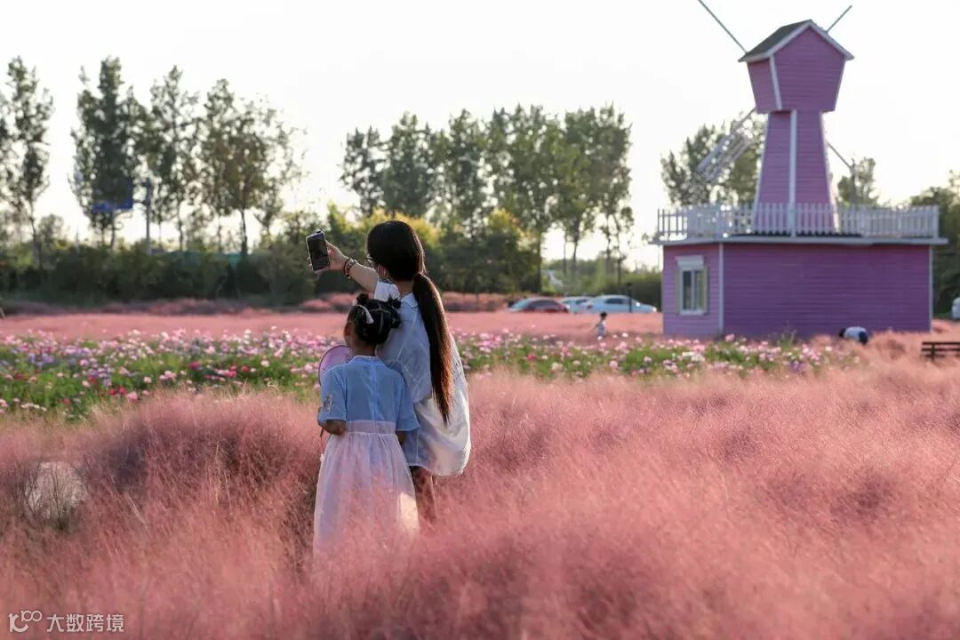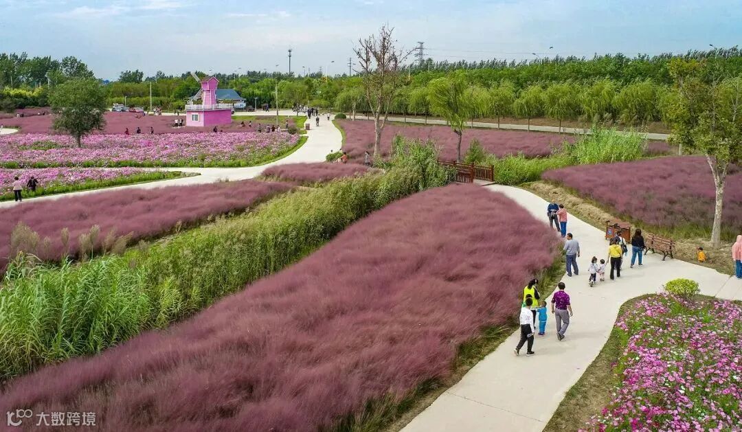 近日,济南商河郊野公园的粉黛乱草子盛开宛如天然画作