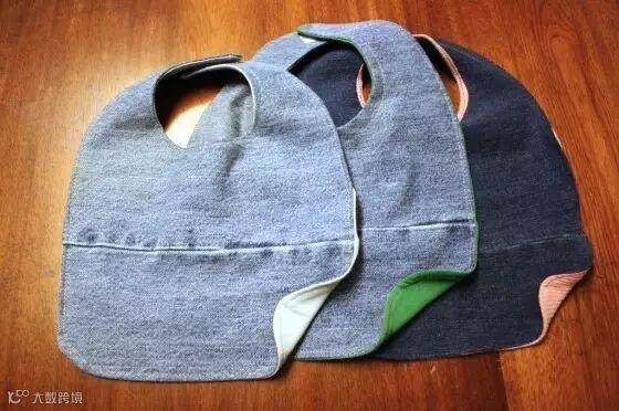 家里有小宝宝的朋友还能用多余的布料做围兜,用料少,一条牛仔裤能做好几条~