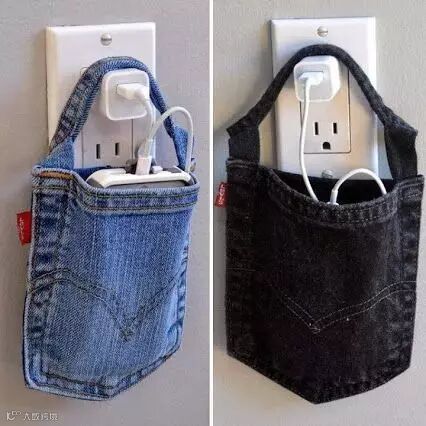 你是不是也有这样的烦恼,手机急着充电,插座太高,线又不够长,很头疼对不对,那不妨用牛仔裤袋做一个简单的置物袋吧,挂在插头上,袋里放手机,和烦恼说再见~